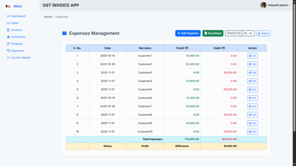 Generate accurate GST invoices instantly with automatic tax calculations.